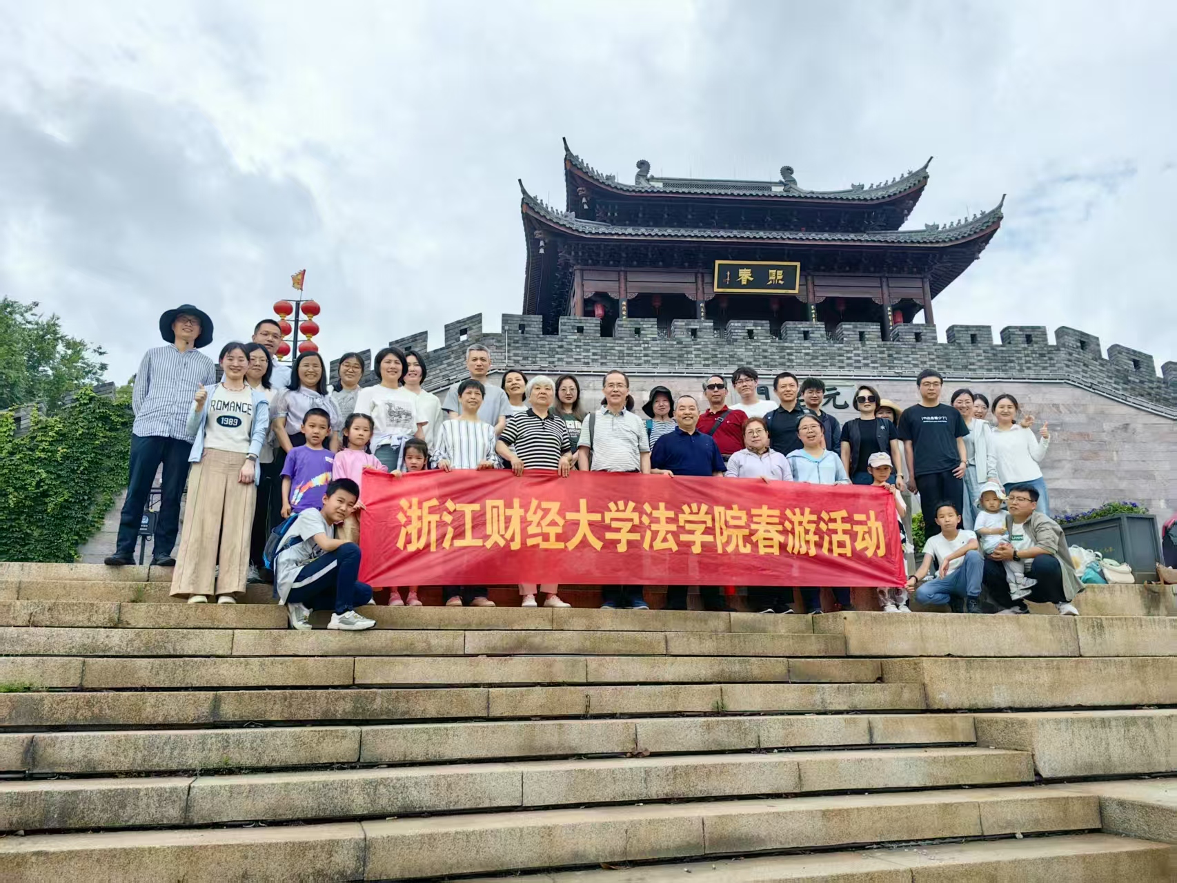 首站抵达新登古城,漫步在古城墙上,感受着历史的厚重与沧桑。古城墙静谧安详,脚下的砖石仿佛在无声诉说着往昔的故事。老师们边走边聊,畅谈着学术与生活,享受着这份难得的宁静与放松。