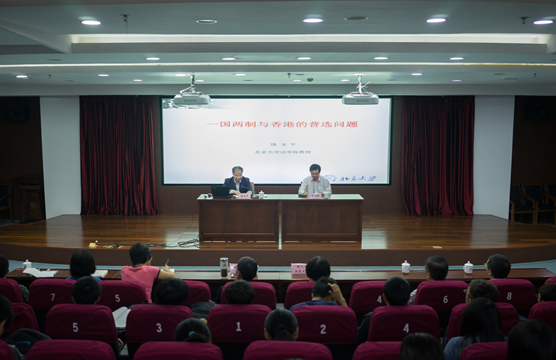 饶戈平教授长期从事国际法的研究,是我国最早从国际法角度研究与香港有关的法律问题的学者之一。此次讲座,饶教授不仅带来了大量有关香港普选的丰富知识和信息,也与师生们分享了他二十多年潜心研究的学术观点和心得体会,激起了鉴黄师