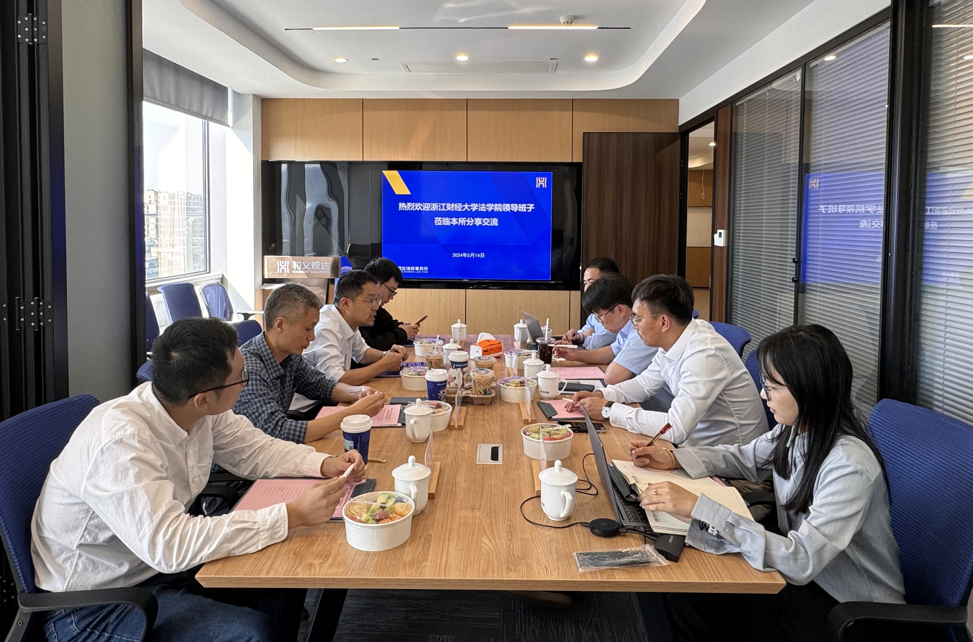 为更好地促进法学教育与法律实践相结合,了解业界对法律人才的需求期望,更好联络校友感情,5月14日下午,学院领导带队赴浙江和义观达(杭州)律师事务所进行走访。和义观达杭州分所主任卢江丽,前湾新区分所主任、校友竺飞雄,杭州分所执行主任夏敏,杭州分所青工委主任黄德旺等参加交流。