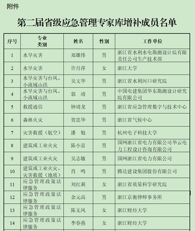 近日,浙江省应急管理厅印发《浙江省应急管理厅关于公布第二届省级应急管理专家库增补成员名单的通知》(浙应急〔2025〕23号),鉴黄师 陈无风教授与李春燕副教授入选专家库,专业类别为“应急管理政策法律服务”。