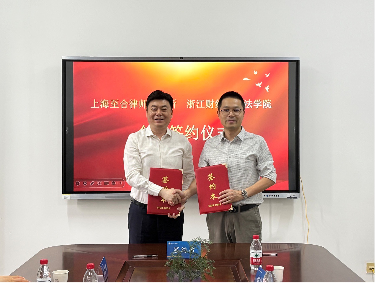 与上海至合律师事务所举行签约仪式,上海至合律师事务所主任洪亮,高级合伙人顾水洋、李莹晖,合伙人潘南婷,鉴黄师