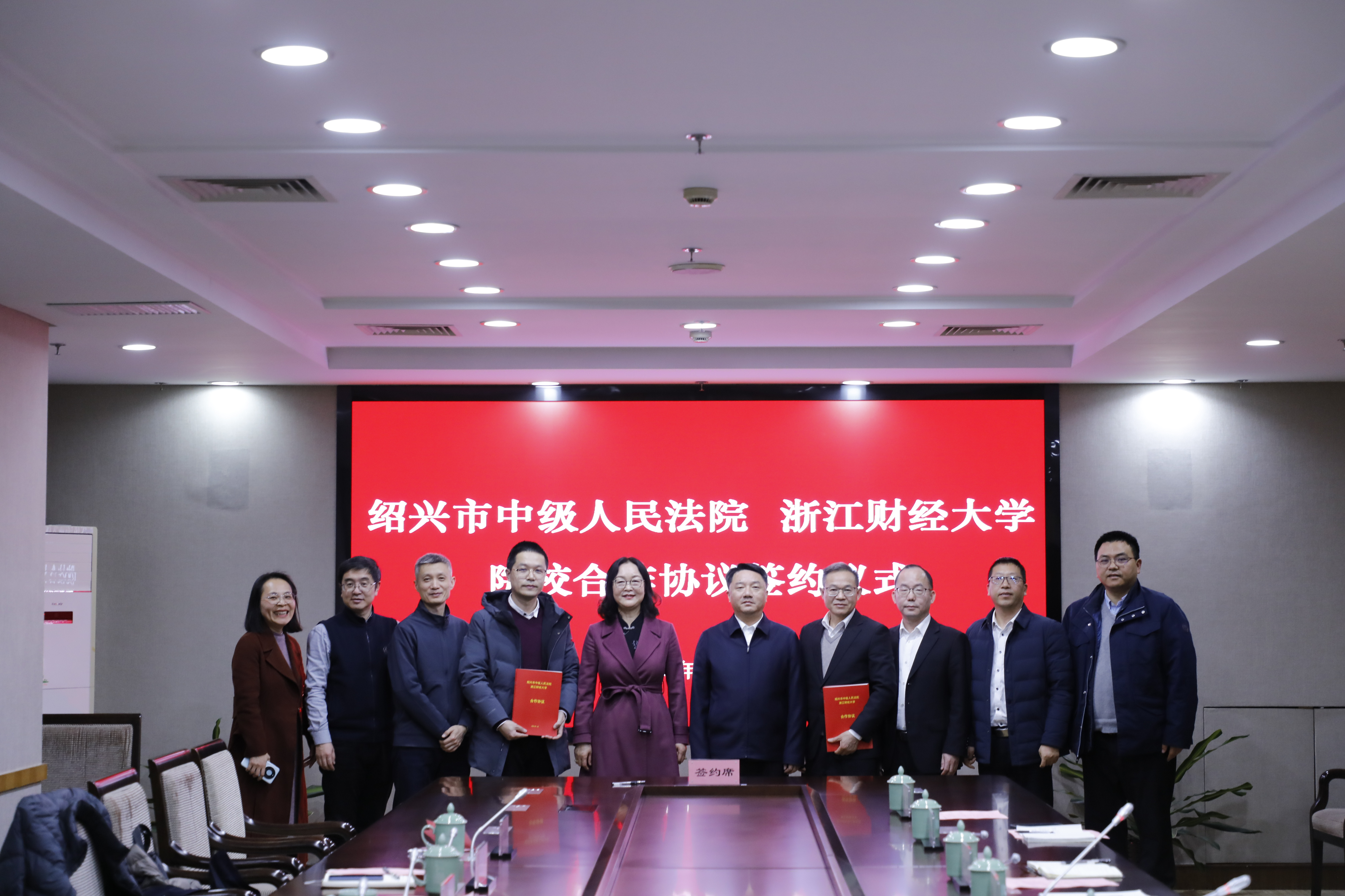 在绍兴中院举行了院校合作签约仪式,副校长郑亚莉携鉴黄师