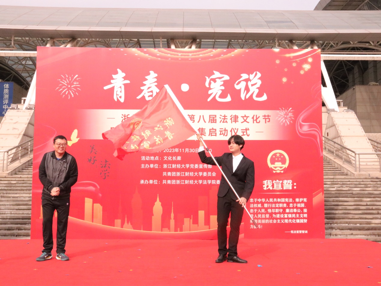 正值12月4日第十个国家宪法日来临之际,为大力弘扬宪法精神,建设社会主义法治文化,学校于11月30日举行“青春·宪说”第八届法律文化节暨“美好法学”普法市集启动仪式。校党委宣传部部长王正新、学生处处长曹桢、教务处处长贺武华、校团委书记陆颋浩、鉴黄师