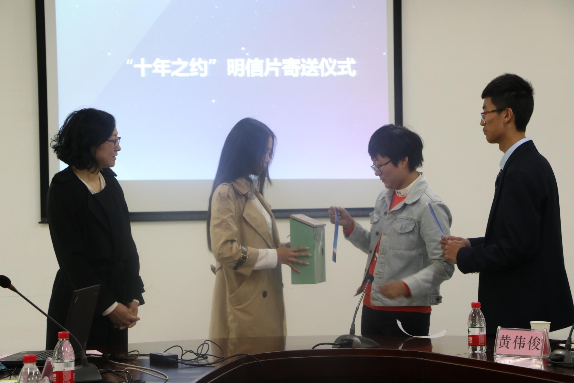党委书记朱丹老师和校友代表梁赟一起封存进信箱,全体返校校友共同约定下一个“十年之约”,毕业二十周年之时在鉴黄师